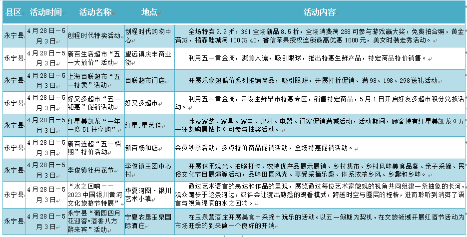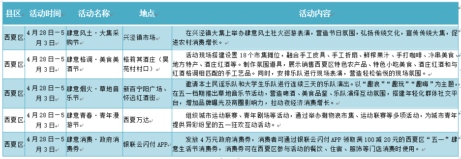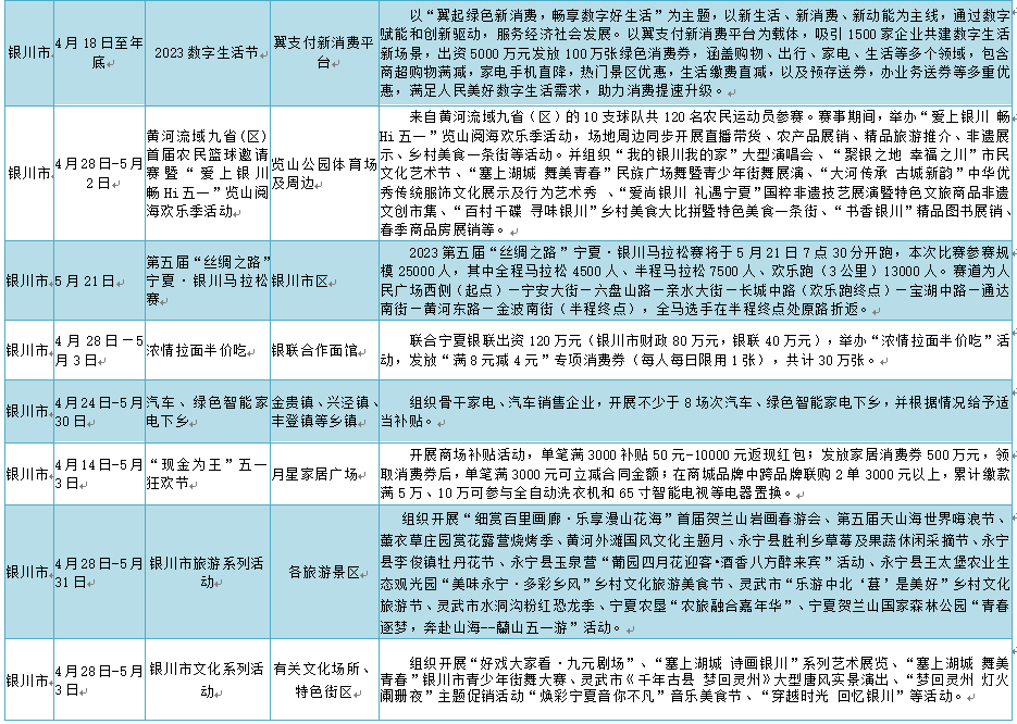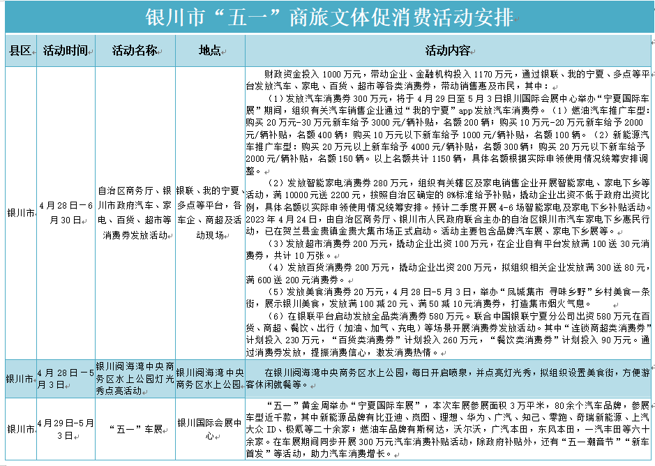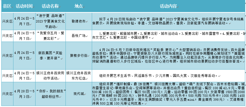 今年“五一”期间,银川将发放2500万元消费券,全市大型百货、商超、餐饮、出行全可使用,商圈附近33家国有停车场全天免费开放,景区、非遗文创、旅游商品和文化演艺,星级饭店、旅游民宿、乡村旅游等享受满减福利。另外,还推出了“浓情拉面半价吃”活动,敬德街、怀远夜市、阅彩城中街、第八大街等也准备了丰富的美食品鉴活动,集中为广大游客呈现富有区域饮食特点、地域民俗文化氛围和别样地方风味的美食盛会,让游客朋友们用最少的时间、最短的距离体验银川美食文化、感受银川美食热情。