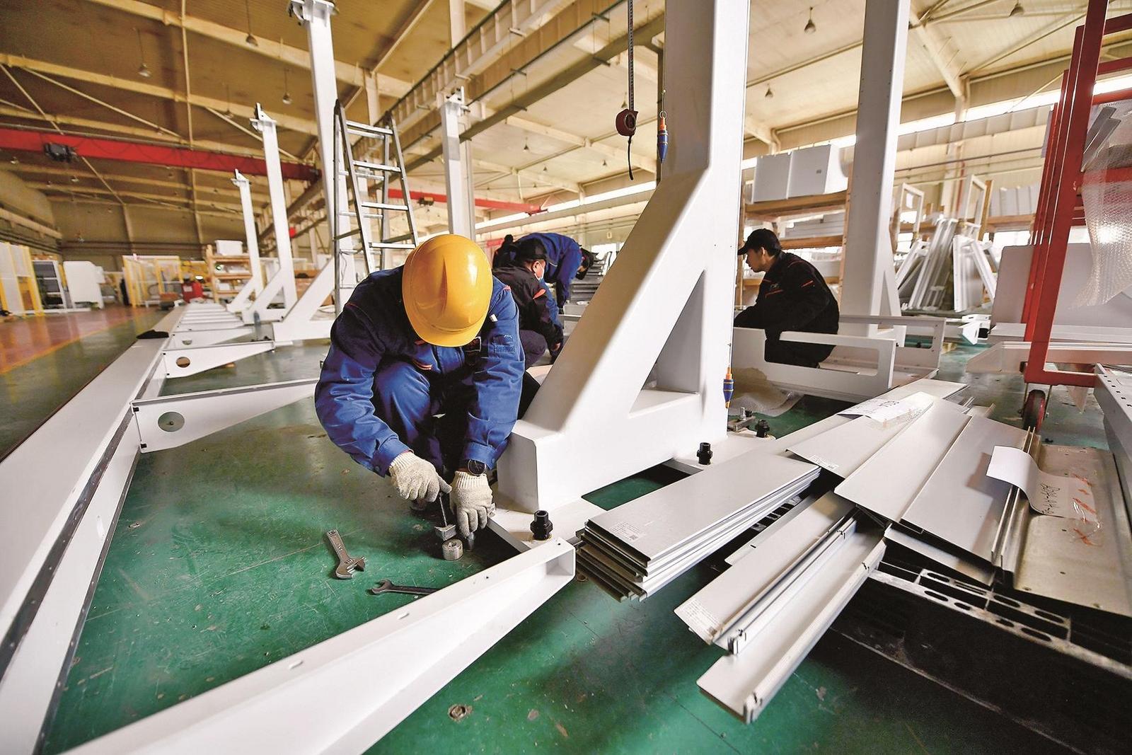 在宁夏巨能机器人有限公司生产车间,工作人员正在为某汽车企业装配自动化生产线