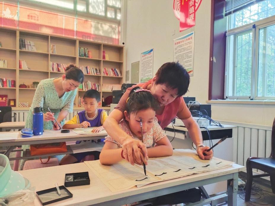 “知道孩子就在隔壁,有专业老师看着,心里踏实,画出来的山水也有灵气。”范金龙终于有了属于自己的“两小时”:早上送孙子到儿童之家,再转身走进书画室练习书法。笔尖在宣纸上游走时,他不再时刻惦记孩子,而是全身心投入创作。