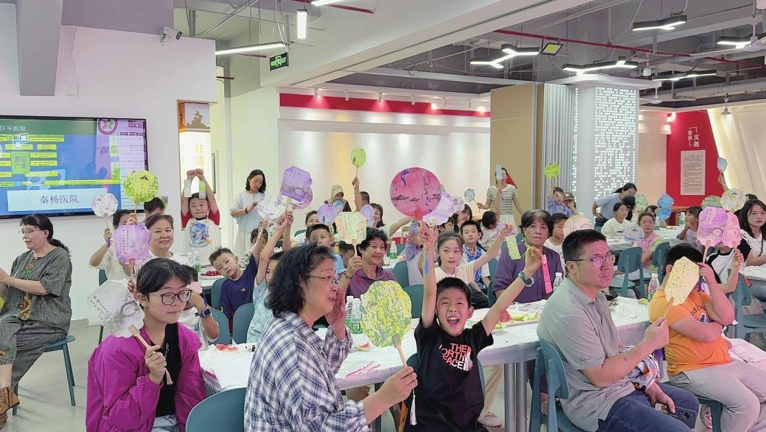 金凤区枫林湾社区老人和孩子们共同制作漆扇