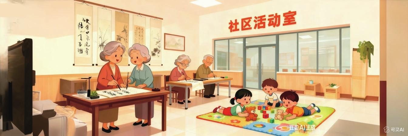 社区资源空间有限,而居民需求呈多样化、精细化特点。“老幼共托”模式不仅解决了实际照护需求,实现跨越代际的价值互补,更通过代际互动激活了社区文化活力:一方面,低龄健康老人通过参与育儿活动获得社会价值感,缓解了孤独感;另一方面,儿童在老人的陪伴下学习传统技艺、获得情感支持,也减轻了双职工家庭的育儿压力。这种双向价值交换打破了传统养老的单向付出逻辑,实现了“以老助幼、以幼养老”的良性互动。