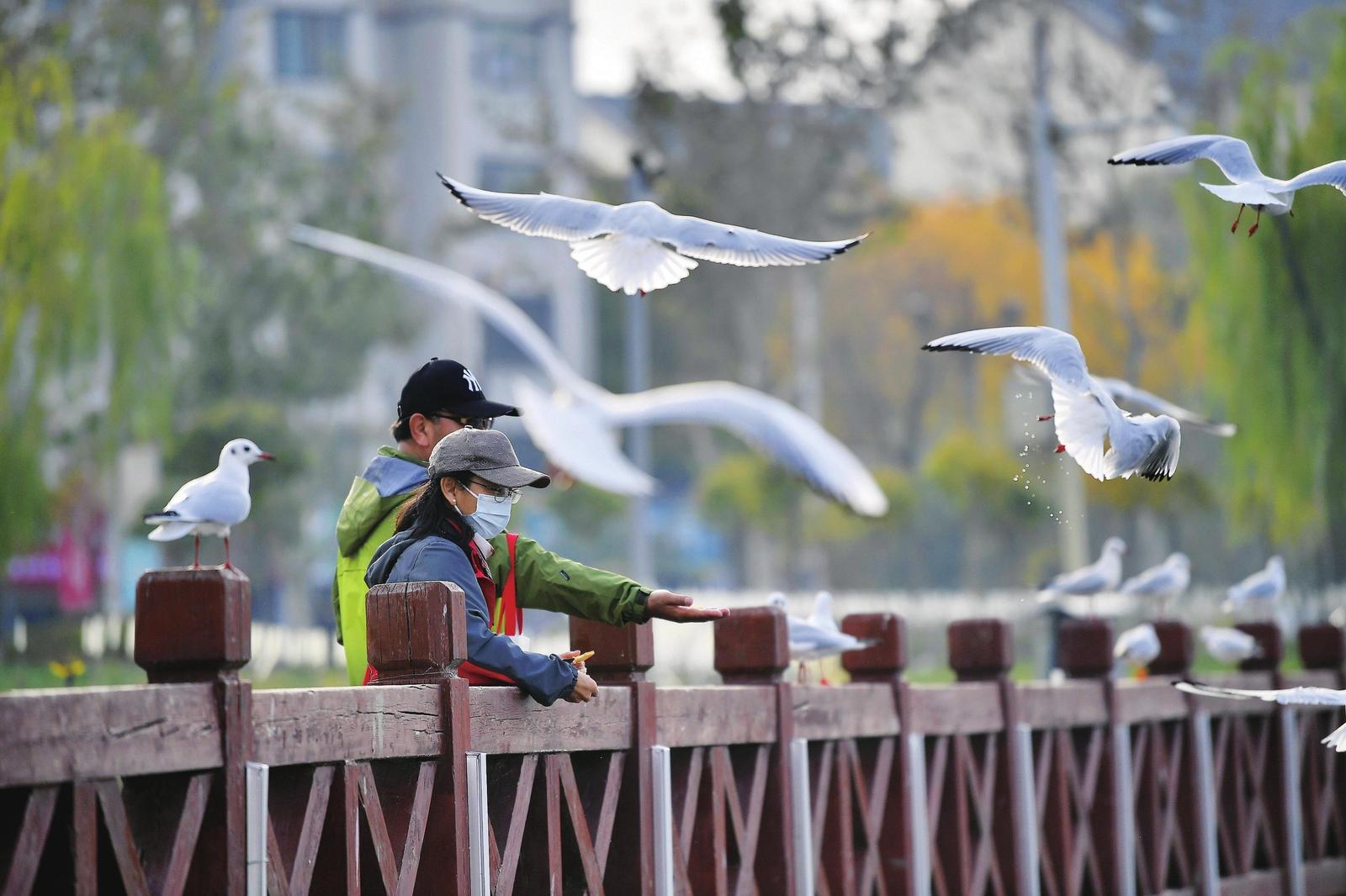 深秋时节,银川市各大湖泊湿地迎来大批迁徙候鸟。成群的红嘴鸥在燕鸽湖等地与市民亲近互动,勾勒出一幅灵动和谐的生态画卷。