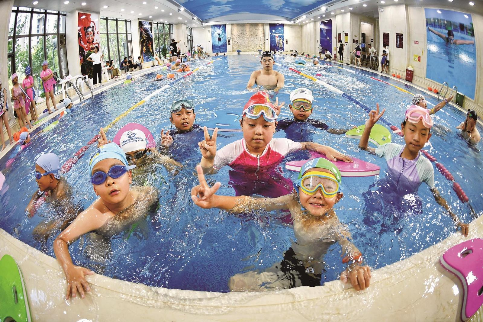 孩子们通过游泳强健体魄