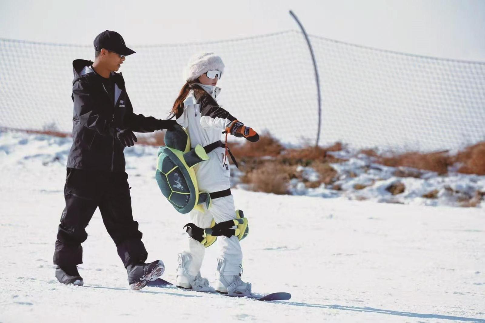 “单板课程以‘技能筑基+进阶突破’为主,从入门阶段的安全知识、雪具使用、基础站姿及滚落线认知入手,逐步引导学员解锁单脚滑行、爬坡等技能,最终实现J型转弯、前后刃转换及重心控制,让学员循序渐进玩转单板‘漂移’。双板课程则侧重基础动作规范与安全滑行能力培养,最终实现犁式S型连续滑行与方向自由掌控,全方位强化学员的滑行技巧与应急制动能力。”阅海滑雪场工作人员介绍。