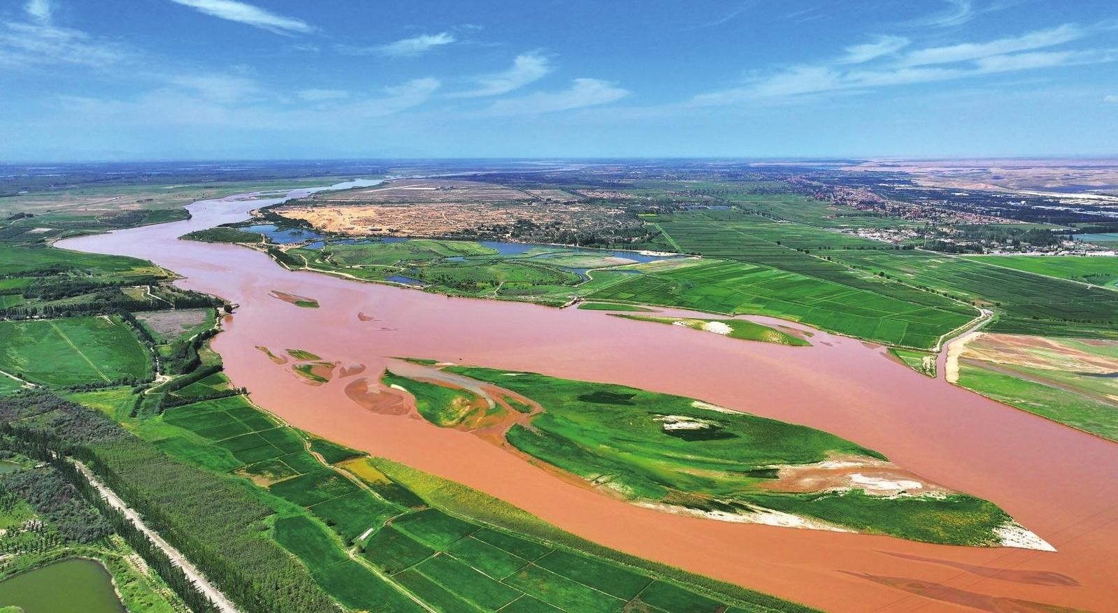 黄河银川段两岸绿意盎然