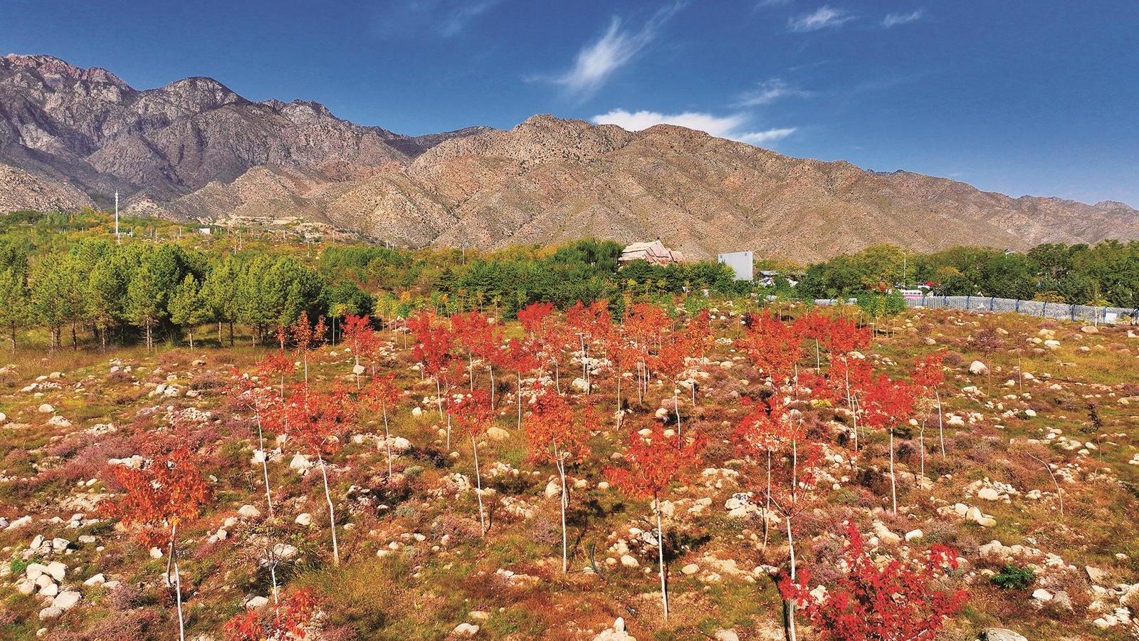 金秋时节,贺兰山下的植被仿佛一夜之间换上了节日的盛装,金黄、深红、翠绿交织成一幅令人心旷神怡的生态画卷。
