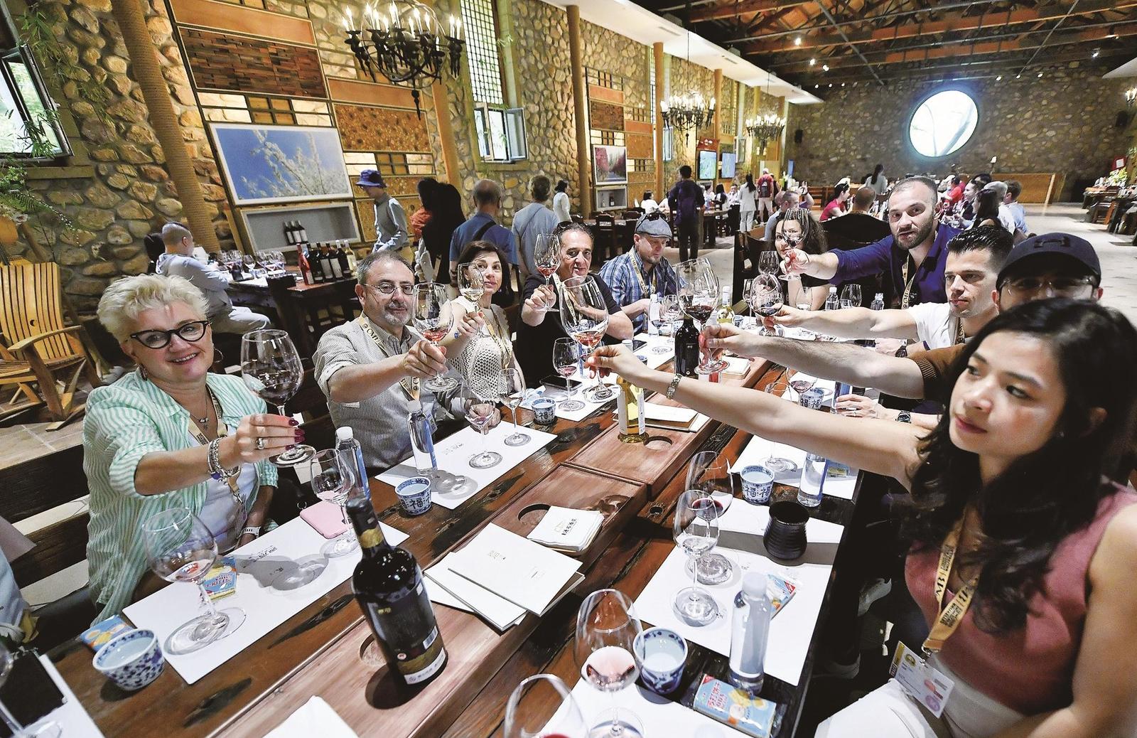 来自各国的葡萄酒商、品鉴师在银川品味葡萄酒(6月10日摄)