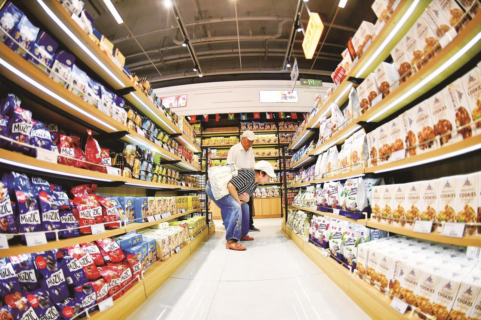 市民游客在中欧班列进口商品(保税)店里选购商品(9月20日摄)