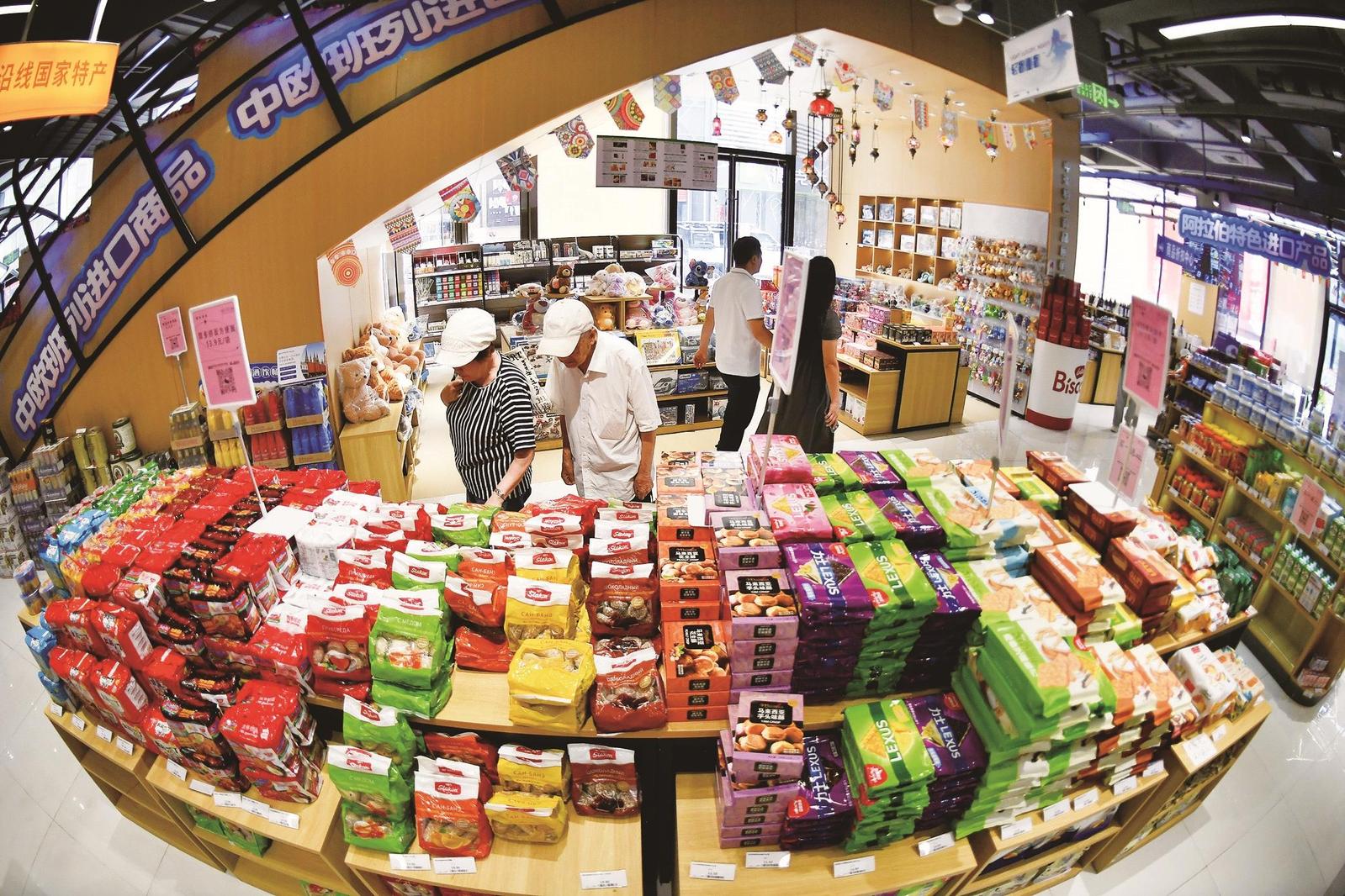 中欧班列进口商品(保税)店内商品琳琅满目(9月20日摄)