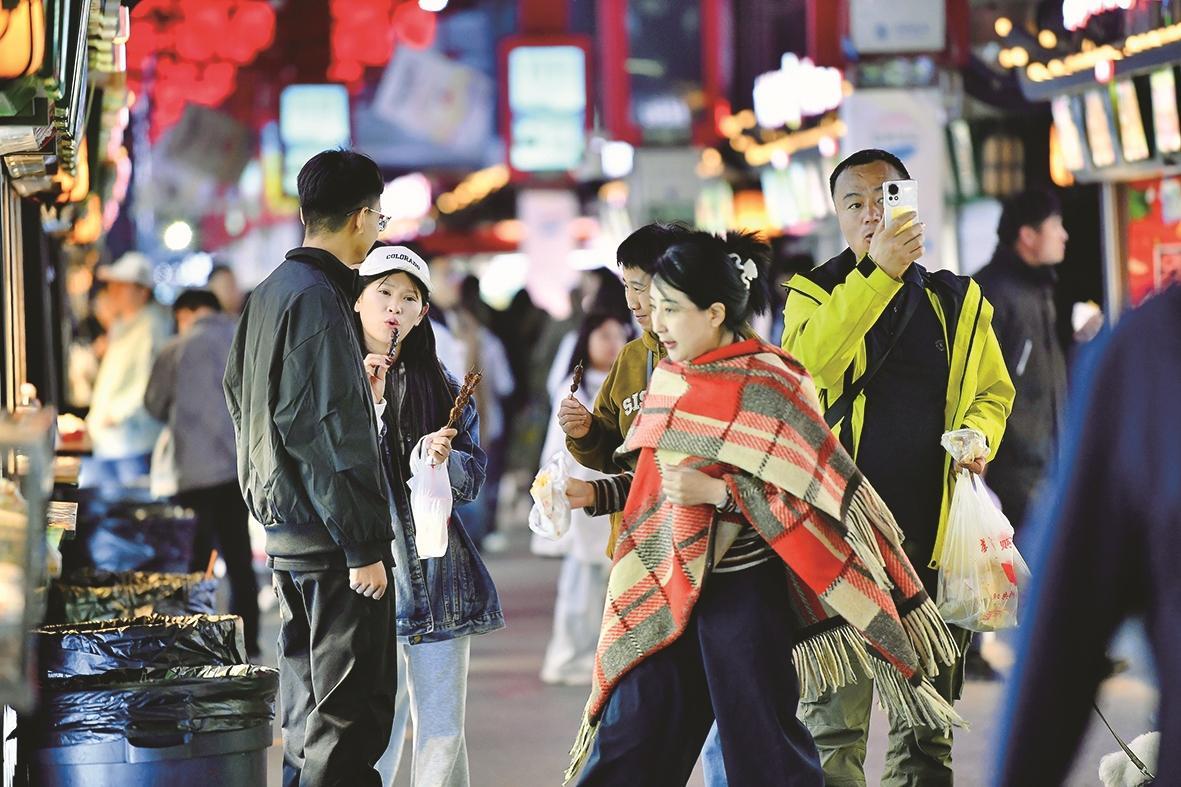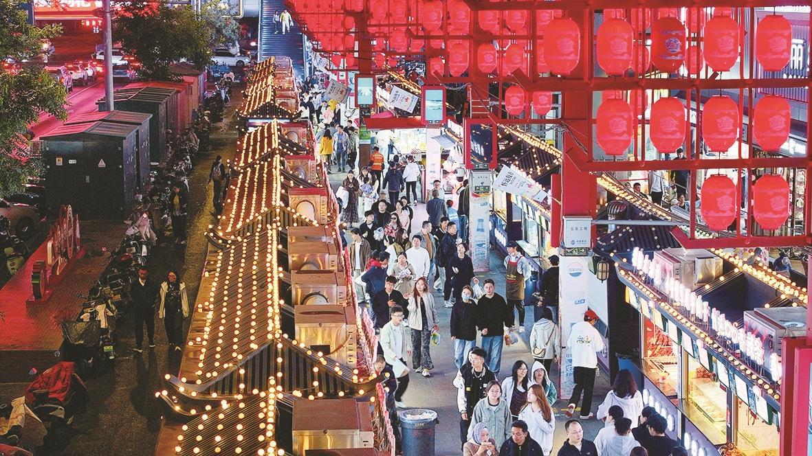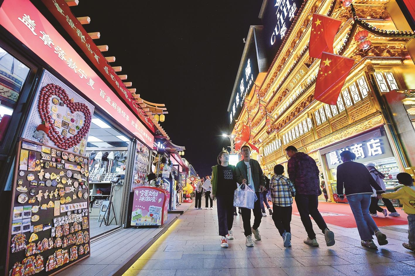 国庆中秋“双节”假期,银川的消费热度持续拉满。各大商场客流不息,阅彩城等商业街区人气旺盛;夜幕降临,怀远观光夜市霓虹璀璨,特色小吃摊位前食客络绎不绝,纷纷品味美食。鼓楼步行街同样热闹,琳琅满目的商品吸引众多消费者驻足选购。
