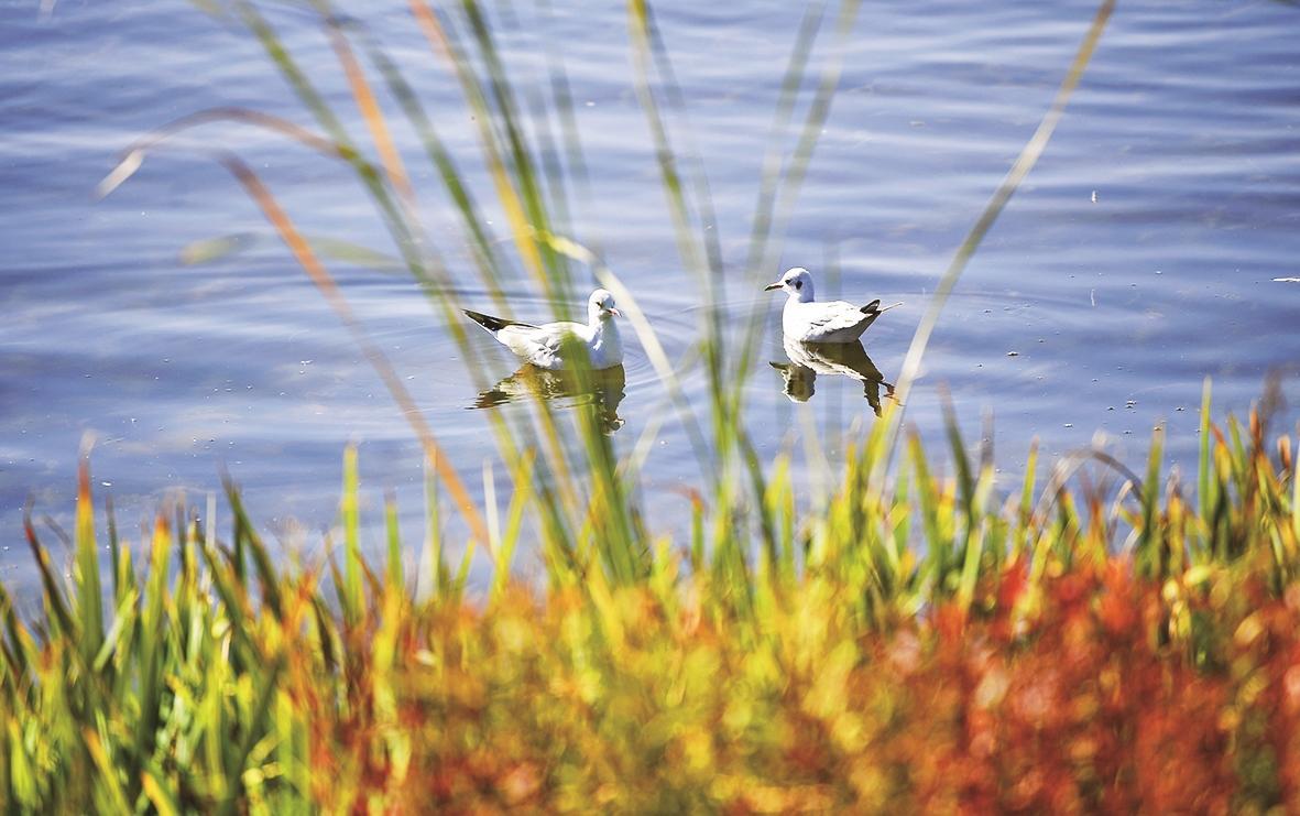 海宝公园则更添几分灵动。繁茂的树木间、如镜的湖面上,红嘴鸥翩跹起舞,时而掠过水面,时而与游人嬉戏互动,秋日的暖阳为这一幕幕温馨画面镀上金边。