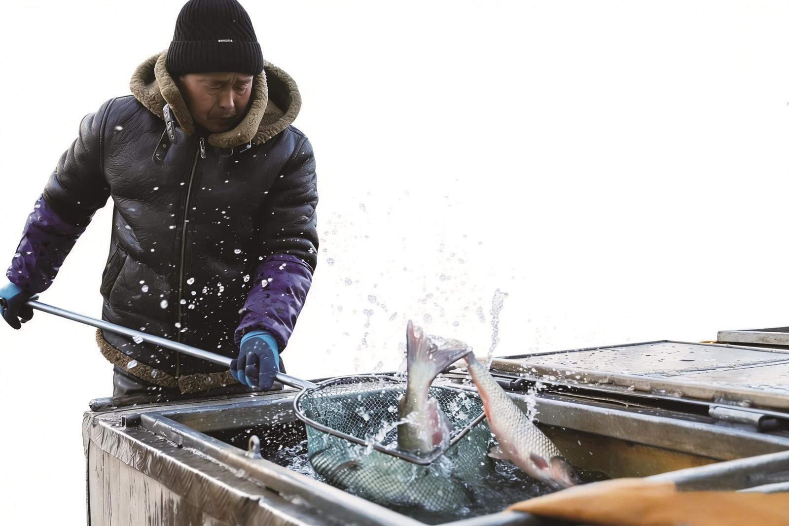 摊主为顾客捞鱼