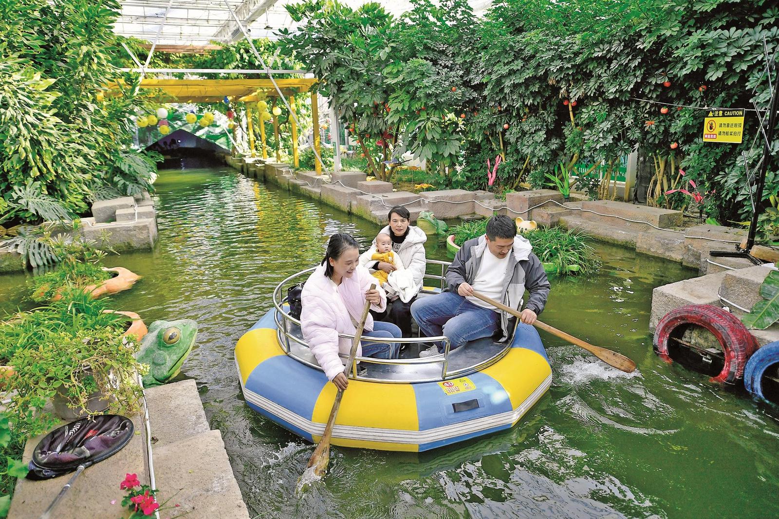 阅海滑雪场里,民俗表演与滑雪运动激情碰撞,热气腾腾的特色美食驱散寒意,游客沉浸在“动感+暖心”的双重体验中;贺兰山岩画景区内,冰瀑景观与岩画相映成趣;宁夏农旅产业园里,游客乘坐漂流艇穿梭“热带雨林”,在寒冬中畅享别样乐趣……