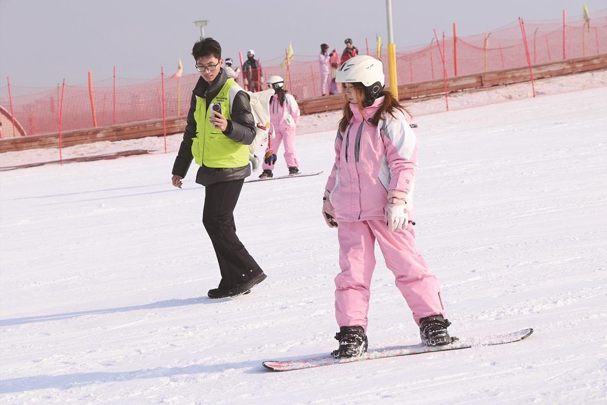 游客学习单板滑雪