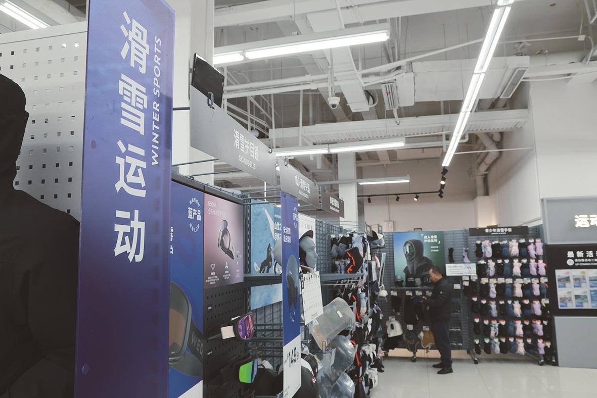 滑雪护目镜、手套、头盔等产品琳琅满目,吸引市民驻足选购