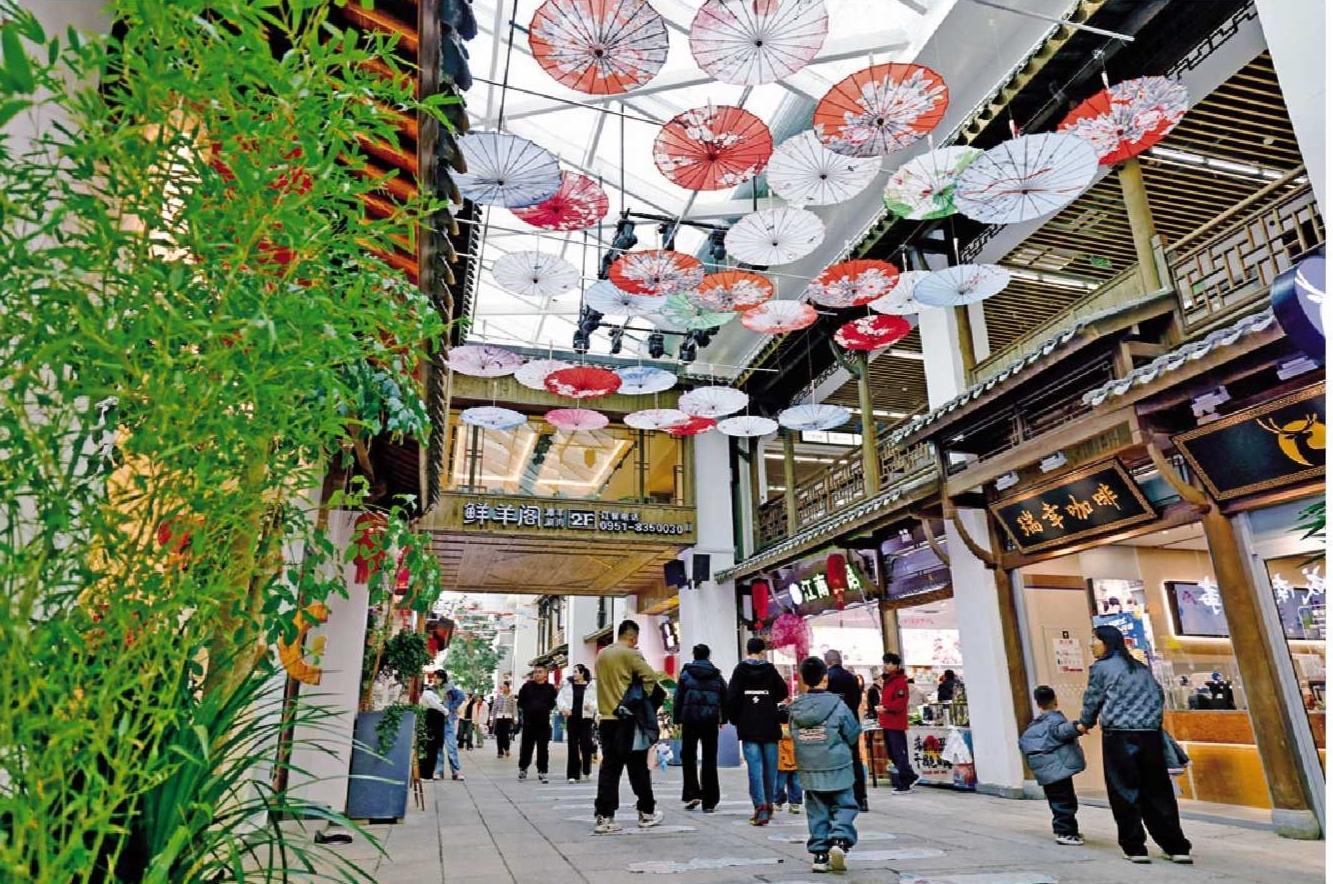 临近春节,砂之船(银川)奥莱江南水街热闹非凡,市民纷纷来此购年货、品美食。