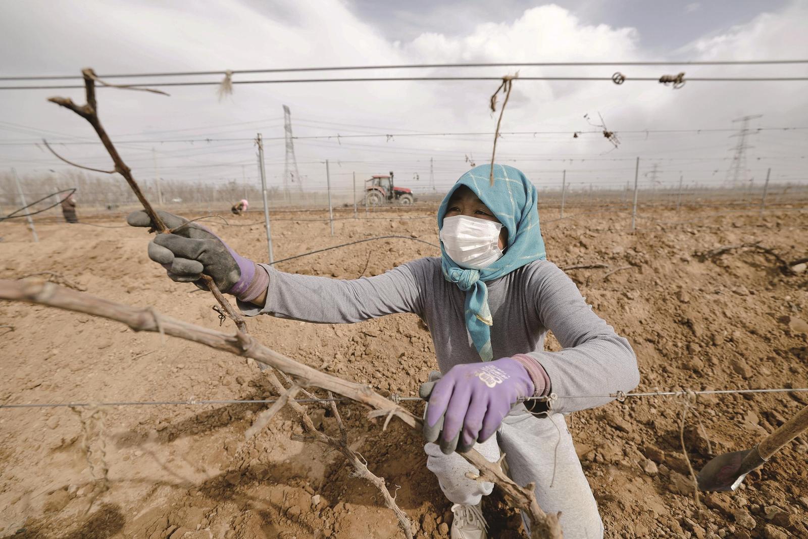 葡萄种植基地里,农民抢抓时节,展藤迎春