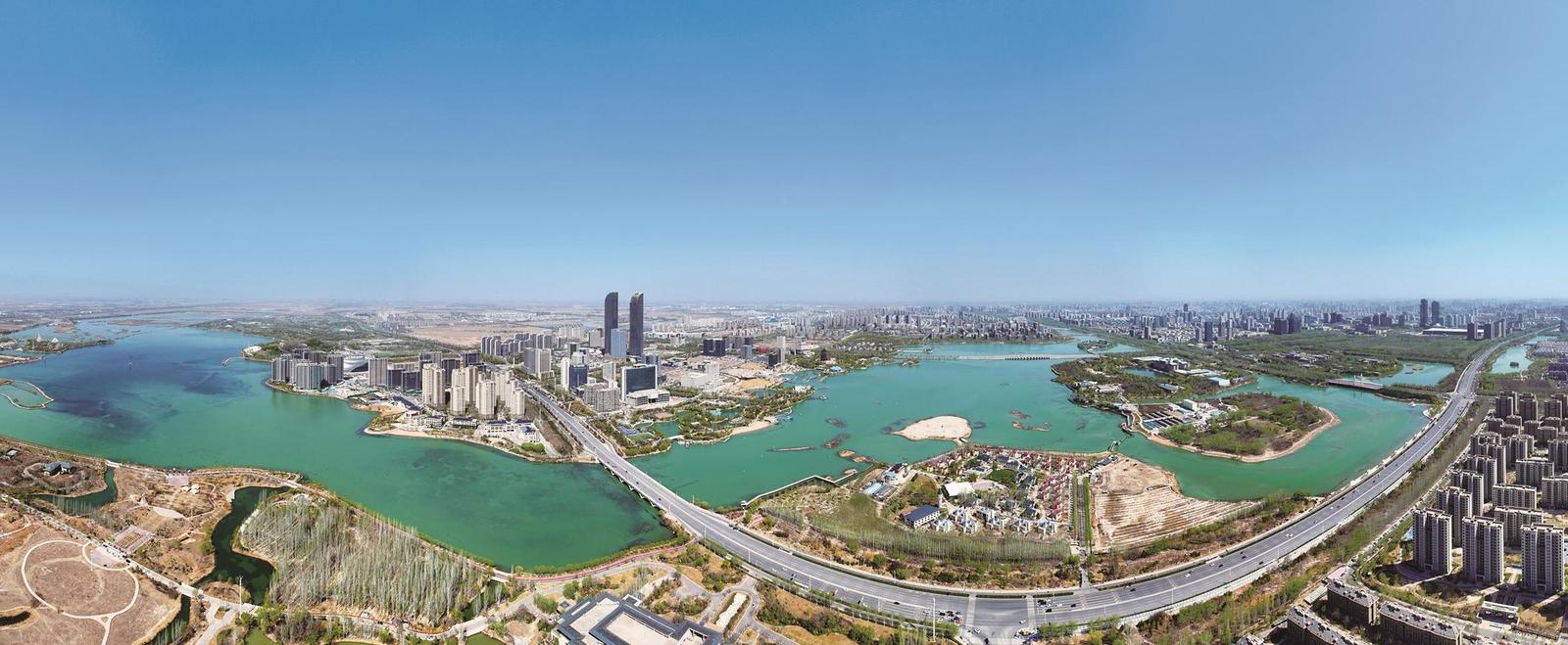 蓝天为底,碧水为墨,春日的银川铺展成一幅澄澈诗意的蓝色画卷。