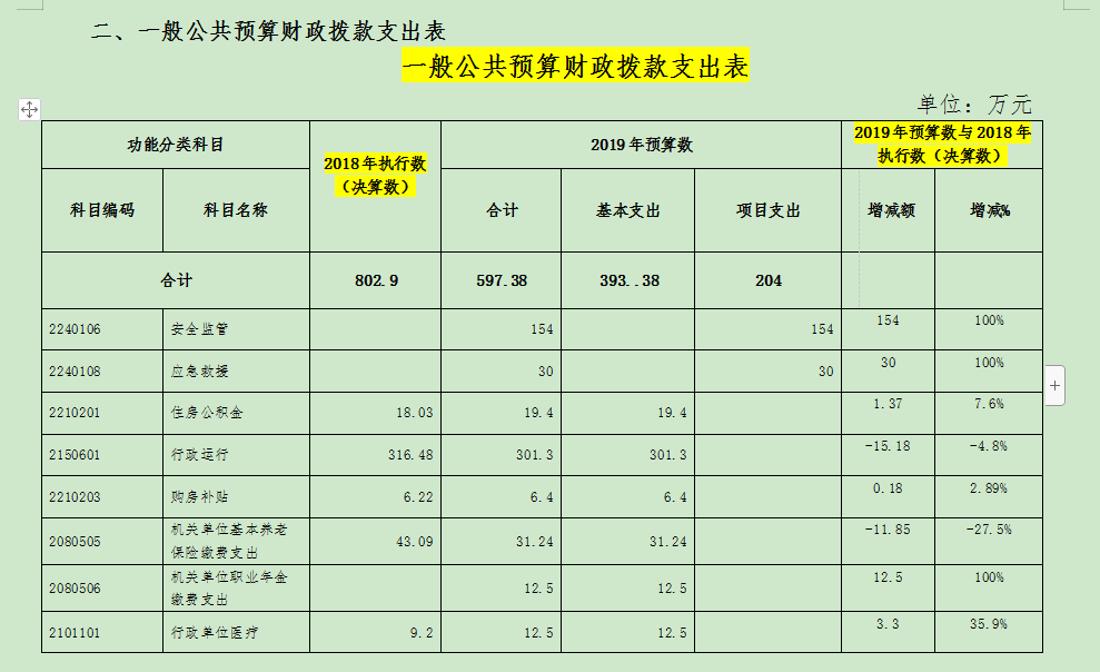 第二部分 2019年部门预算表(表格详见链接)