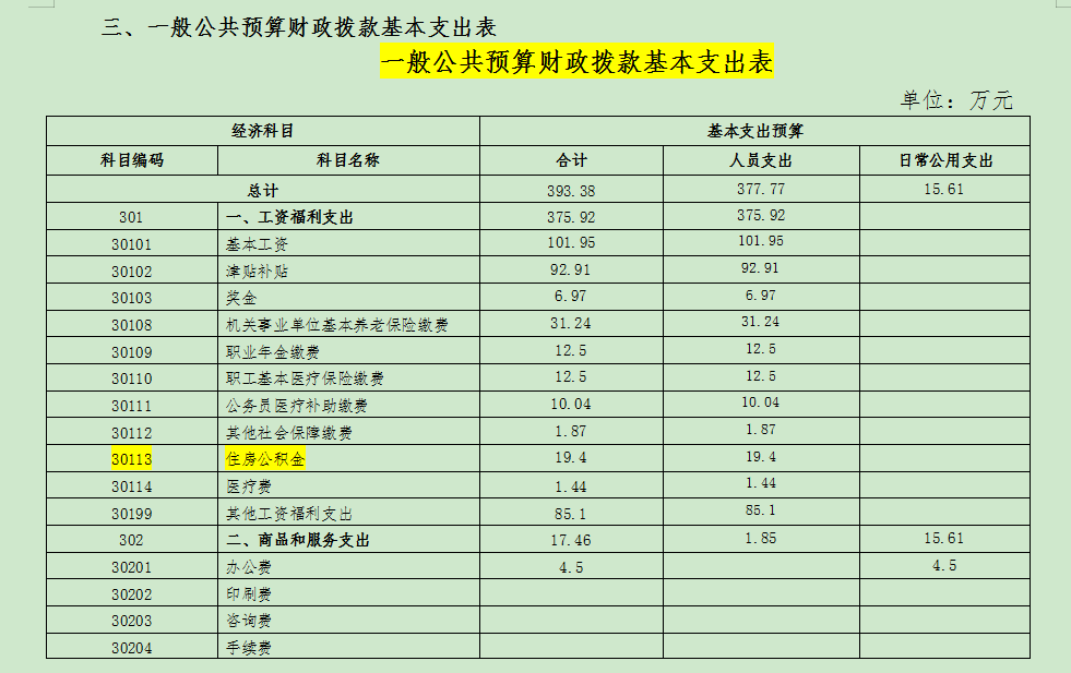 三、一般公共预算基本支出表