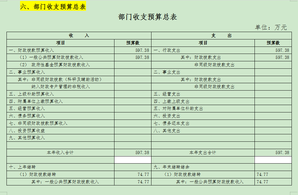 六、部门收支总表