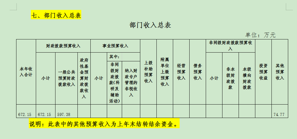 七、部门收入总表