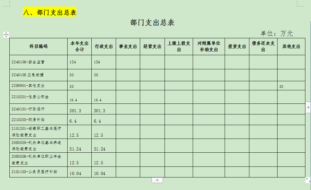 八、部门支出总表