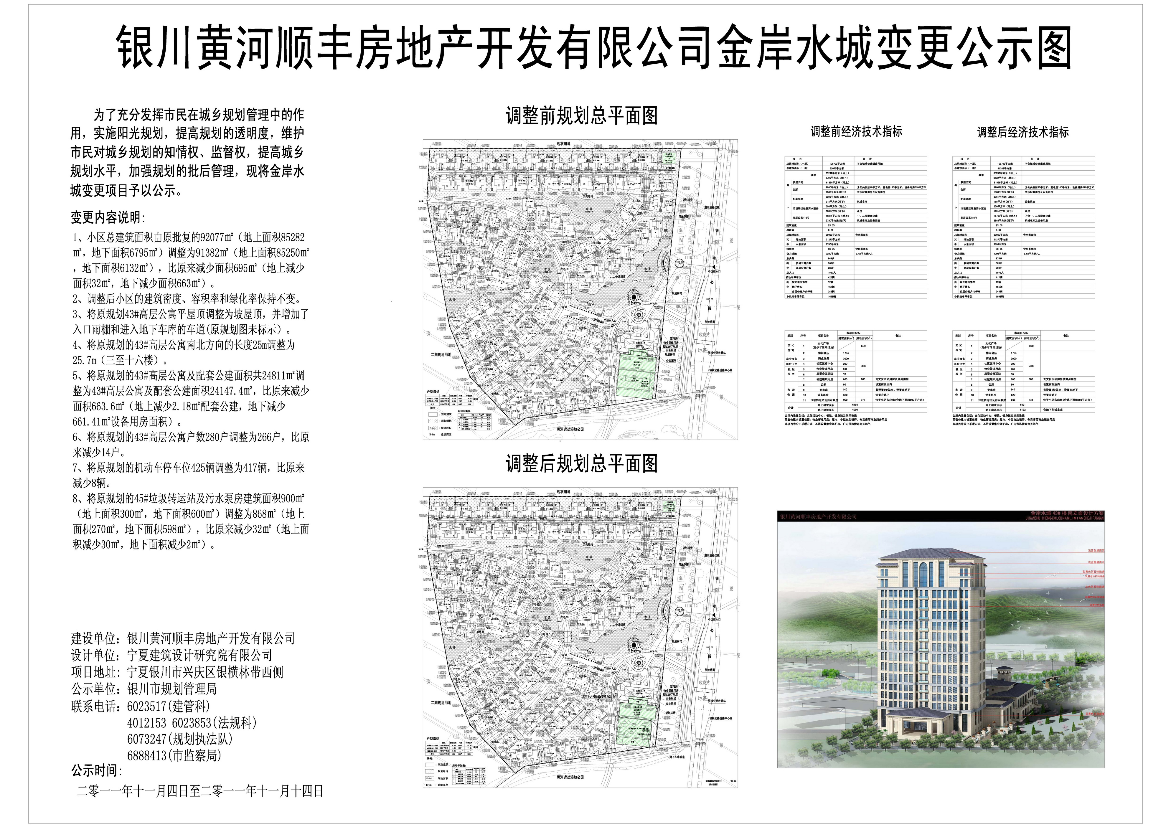 | 银川黄河顺丰房地产开发有限公司金岸水城总平面规划变更公示 |