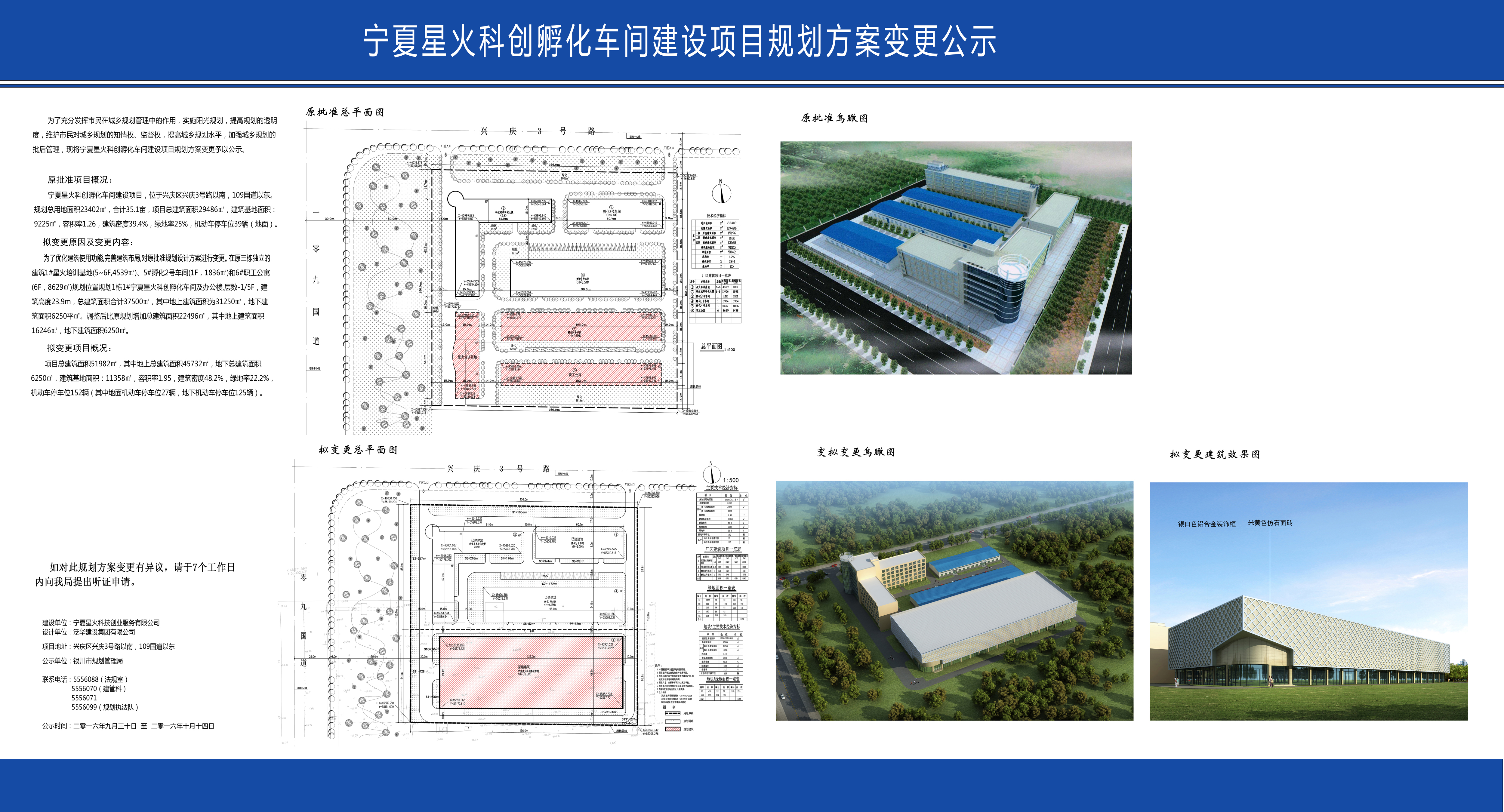 宁夏星火科创孵化车间建设项目规划方案变更公示