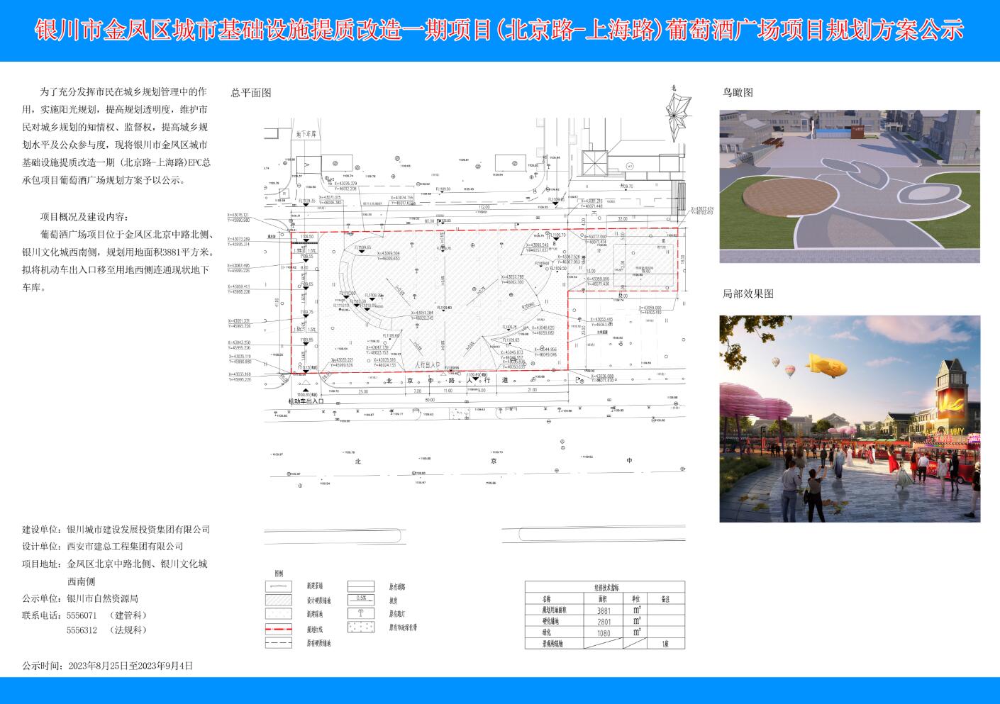 银川市金凤区城市基础设施提质改造一期项目(北京路-上海路)葡萄酒广场项目规划方案公示