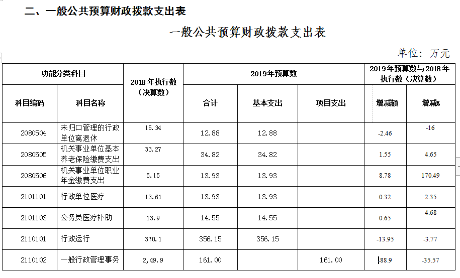 第二部分 2019年部门预算表