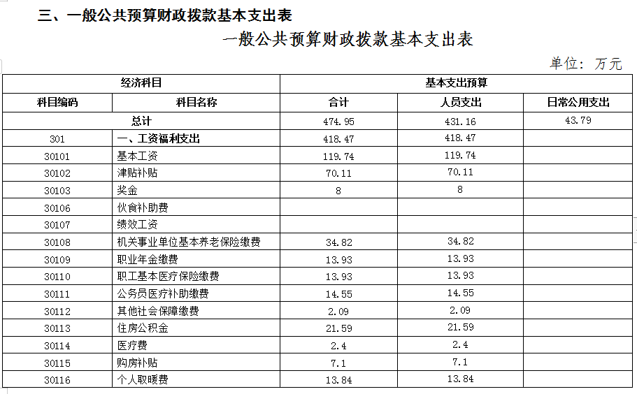 三、一般公共预算基本支出表