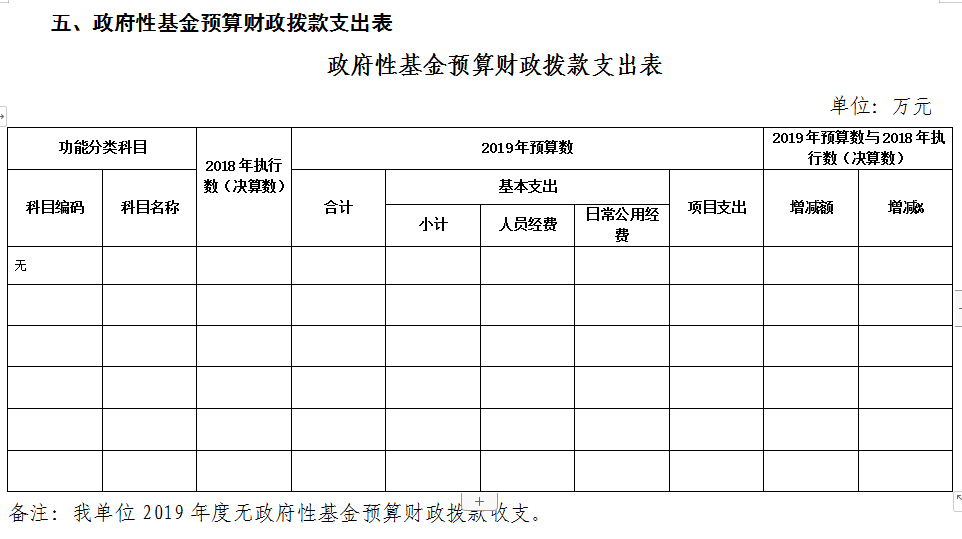 四、关于2019年政府性基金预算拨款情况说明