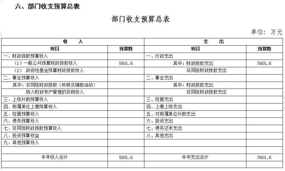 六、部门收支总表