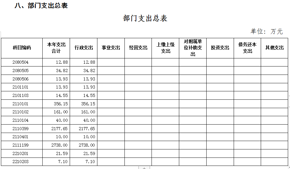 八、部门支出总表