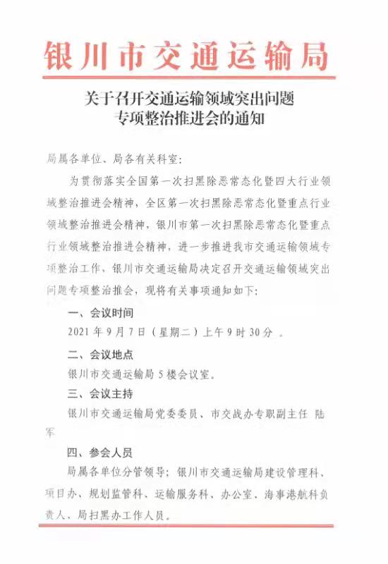 关于召开交通运输领域突出问题专项整治推进会的通知