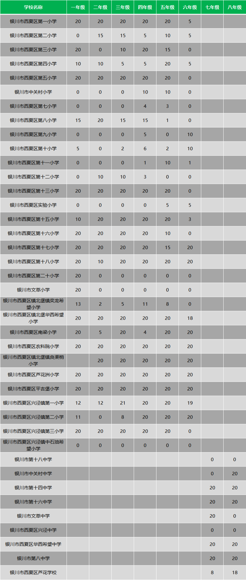银川市西夏区2022-2023学年度寒假转学空余学位统计表