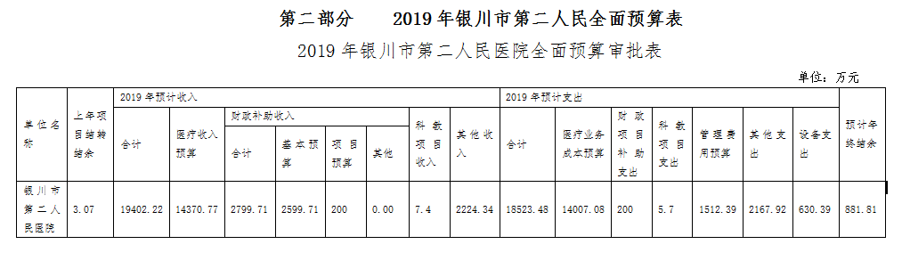 一、2019年银川市第二人民医院全面预算审批表