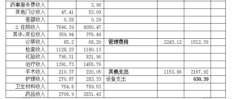 4、管理费用。编报2019年管理费用预算1,512.39万元。其中:人员经费1,110.28万元,卫生材料费0.29万元,其他材料费44.52万元,低值易耗品2.56万元,药品费1.3万元,其他费用353.42万元(水、电、气、物业等费用)。