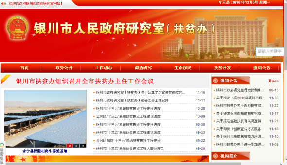 2016年银川市政府研究室(扶贫办)坚持以政务信息公开为常态、不公开为例外,主动公开范围和目录,努力做到全面、准确、及时公开。截止2016年12月份我室公开政务信息61条。