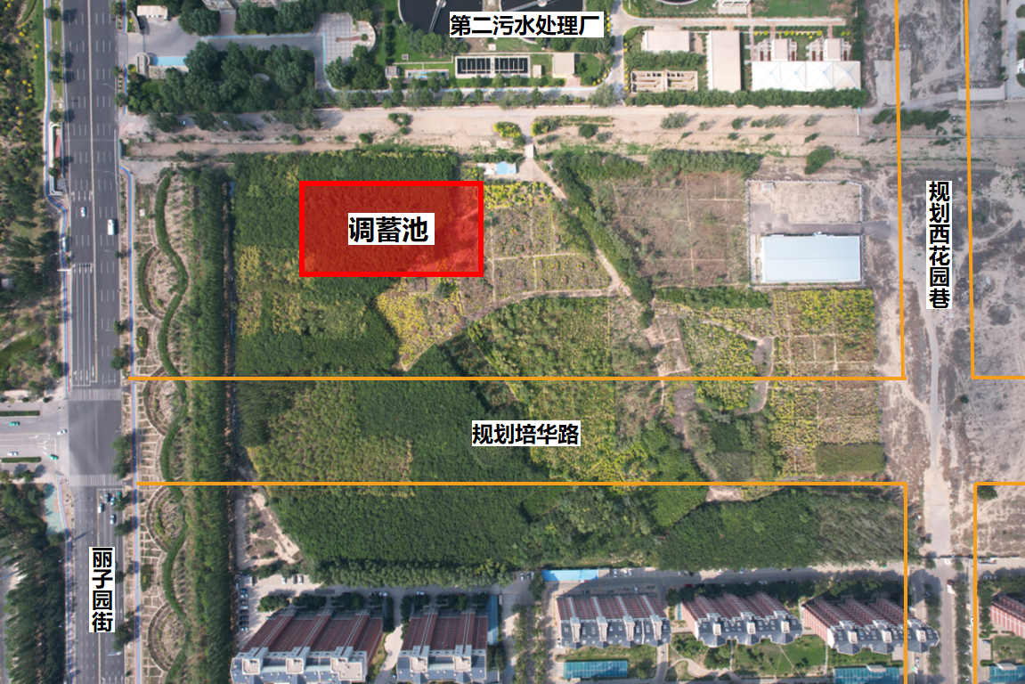 项目位于第二污水处理厂南侧、丽子园街东侧预留建设用地,项目建设内容包括新建雨水调蓄池1座,有效容积约为 3 万立方米,并配套建筑工程、给排水工程、工艺工程、结构工程、支护工程、电气工程等。