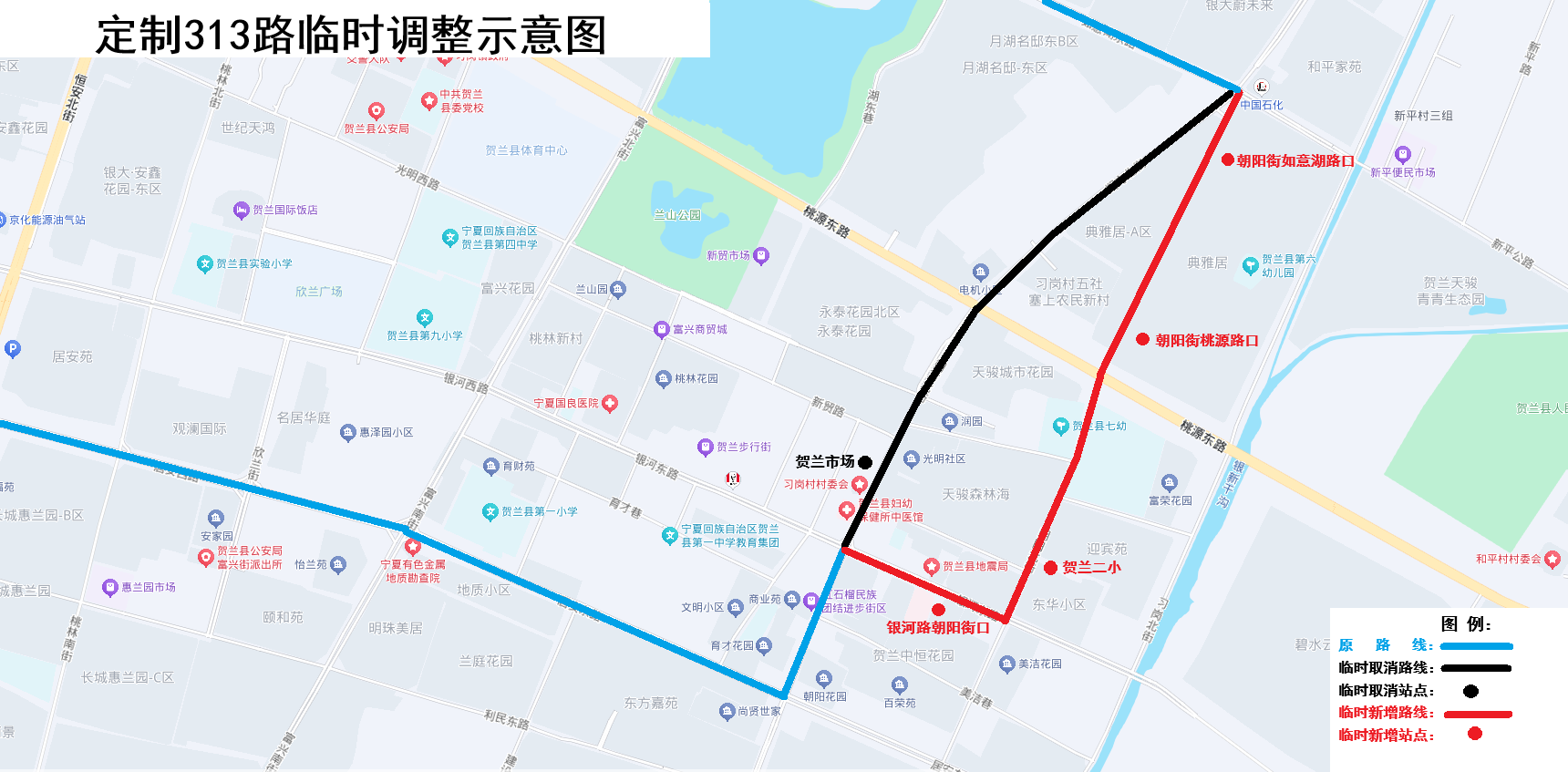 临时取消3站:贺兰县市场、银河路教育巷口、银河路胜利巷口