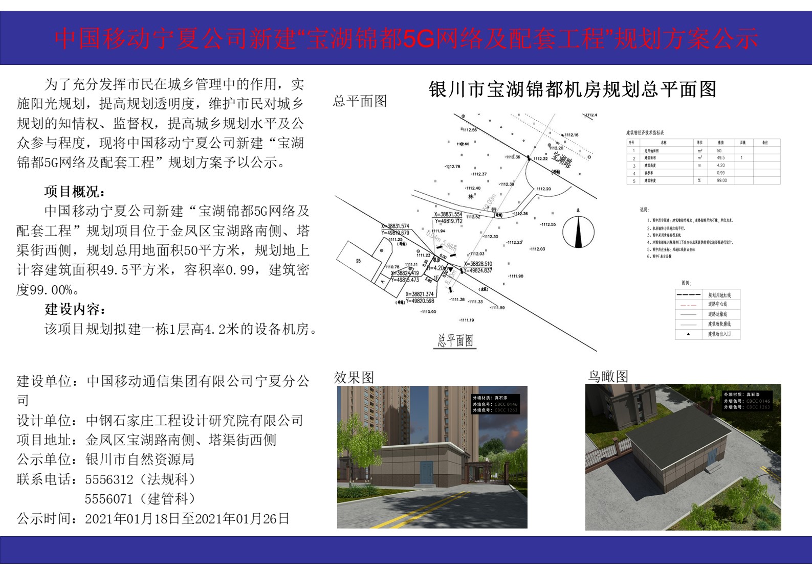 中国移动宁夏公司新建“宝湖锦都5G网络及配套工程”规划方案公示