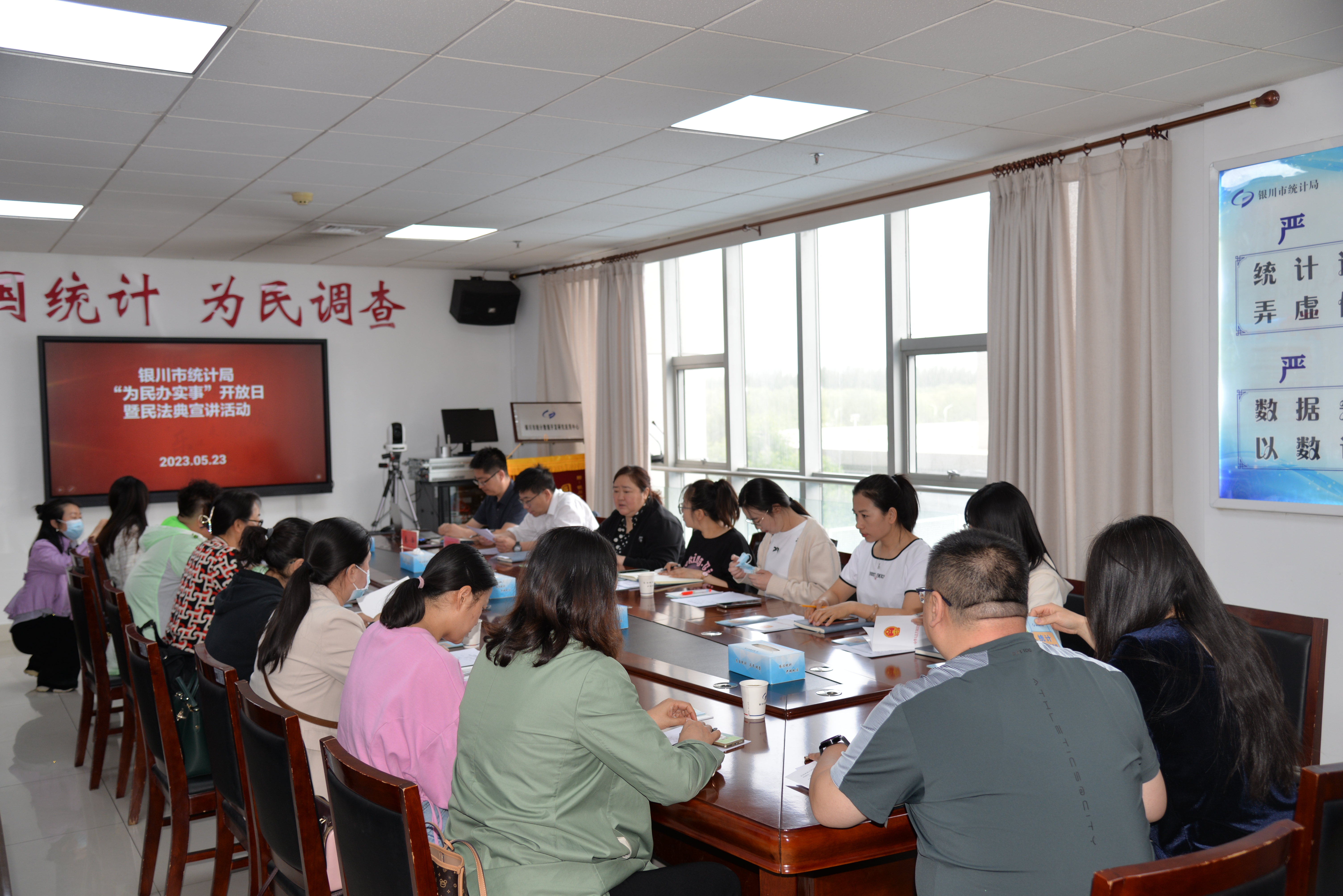 为深入学习贯彻党的二十大精神,进一步贯彻以人民为中心的发展思想,增强群众对政府公信力、执行力的认可度,切实保障人民群众的知情权、参与权与监督权,5月23日,银川市统计局组织开展了“为民办实事”开放日暨民法典宣讲活动,邀请基层统计局、企事业单位统计工作人员等代表20人参加。