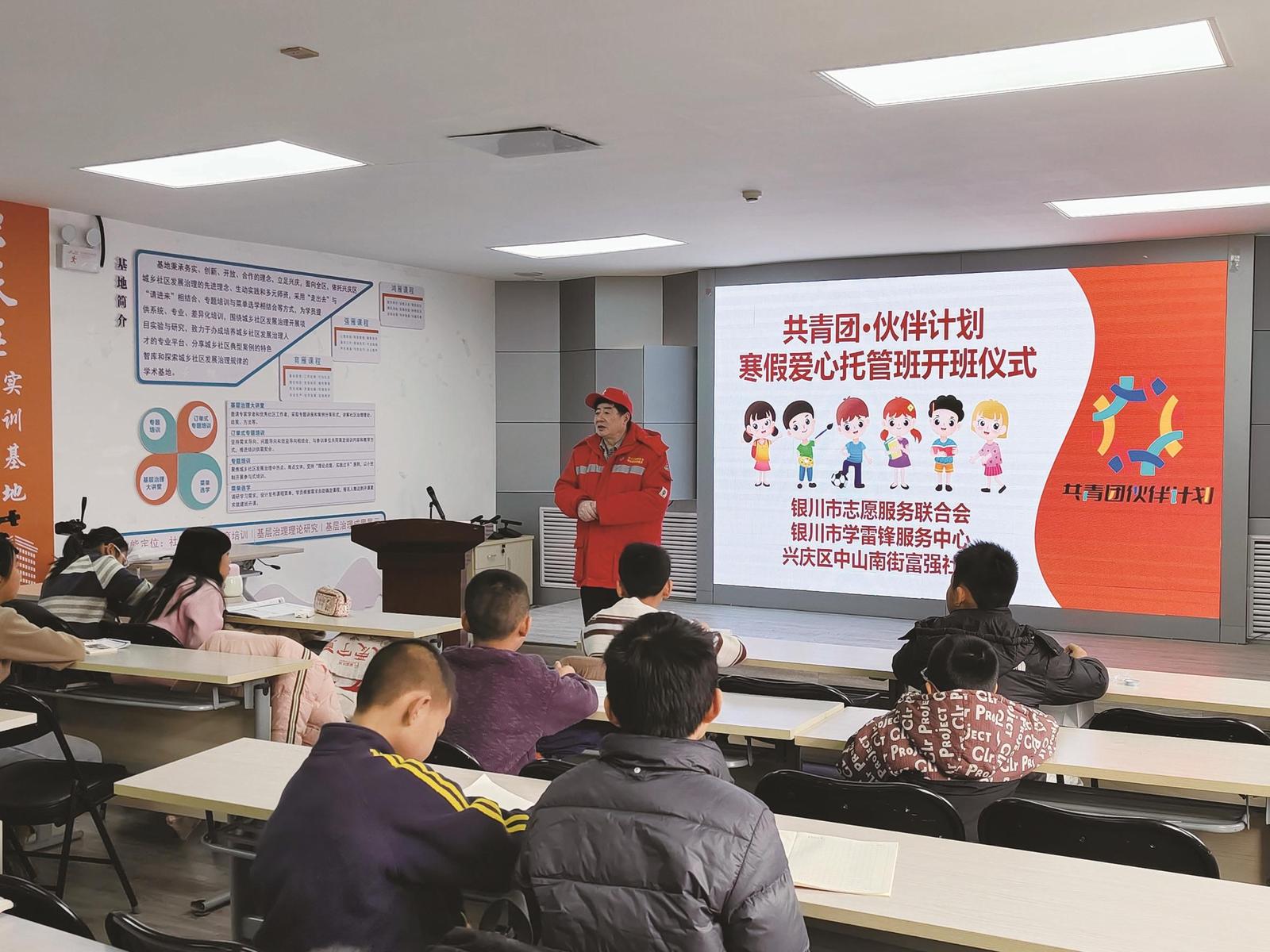 近日,由共青团宁夏回族自治区委员会、共青团银川市委员会与银川市学雷锋服务中心共同组织的“共青团·伙伴计划”爱心托管班走进银川多个社区,在为期10天的活动中,为孩子们带来精心设计、主题鲜明的寒假“成长套餐”。志愿者白艺馨说:“我们希望能用自己的所见所学,为弟弟妹妹们打开一扇看世界的窗。”