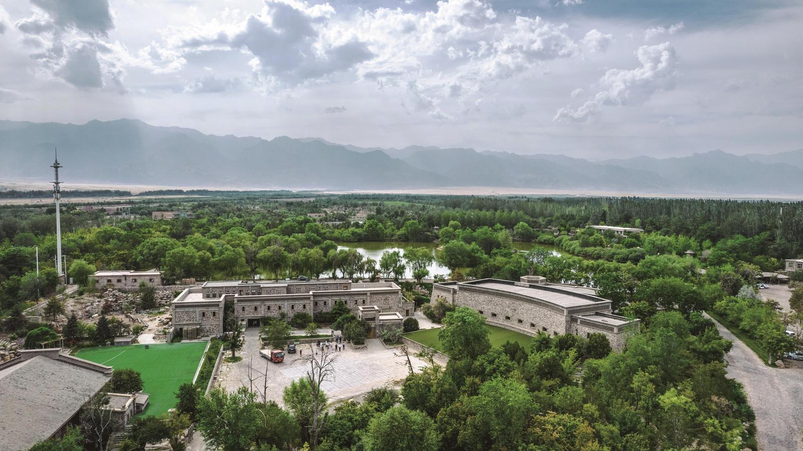 驱车沿贺兰山东麓前行,微风裹挟着石山的苍茫,葡萄园翻涌着碧浪千重,车窗外,志辉源石酒庄古朴而静谧,周边林木葱郁成荫、湖水澄澈。很难想象,这里曾是一处废弃矿坑。