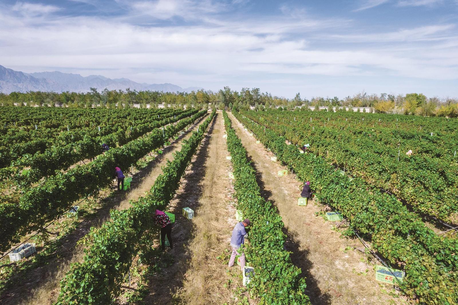 工人们在葡萄园内劳作