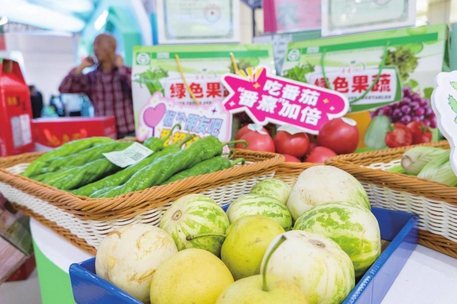 展会上展出的甜瓜、辣椒等绿色优质农产品