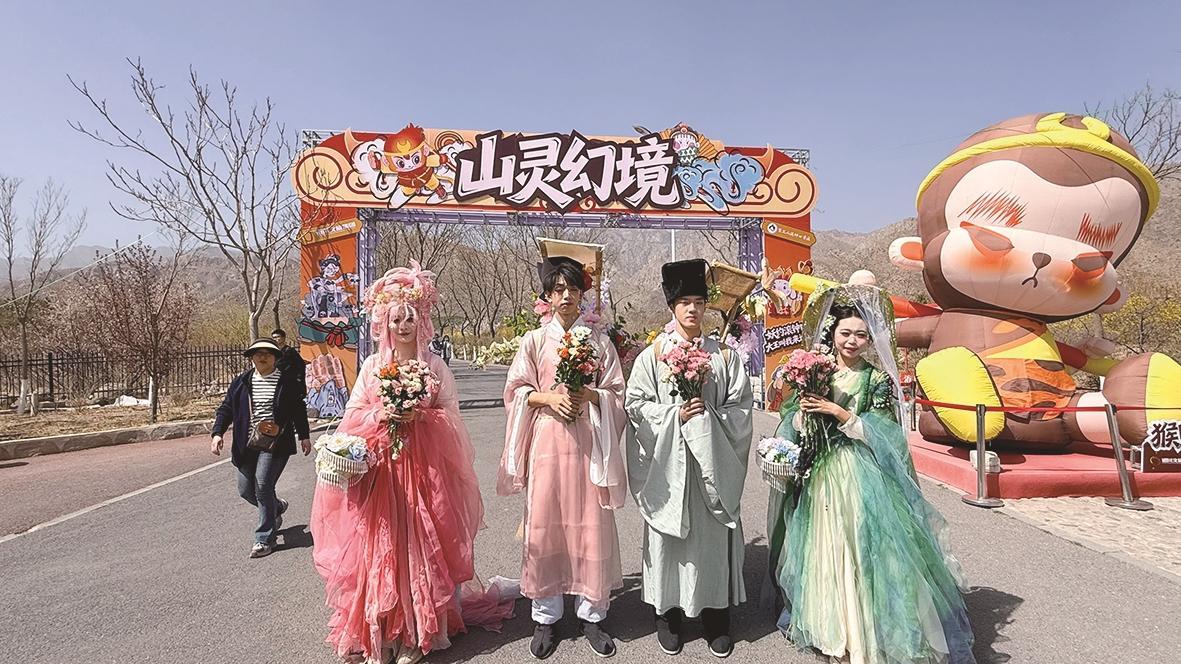 滚钟口景区以“大王叫我来巡山”为主题,打造全景式《西游记》互动剧场。游客领取“入职文书”,化身“取经小队”成员,在山林间与“白骨精”“红孩儿”等NPC对暗号、闯关卡、解谜题。游客姚女士笑着说:“本来只想爬山,结果被‘小妖’拦住加入了巡山游戏,和朋友玩得很开心。”此外,“五一”假期,滚钟口景区还将上线西游主题限定玩法,高颜值簪花郎与灵动小妖NPC组团巡游,氛围感拉满;每日三场爆笑情景剧《重返女儿国》重磅上演,演绎唐僧取经归途被半路拦截,引爆才艺大比拼的趣味故事。现场笑点密集,观众还能上台互动,沉浸式参与欢乐剧情。