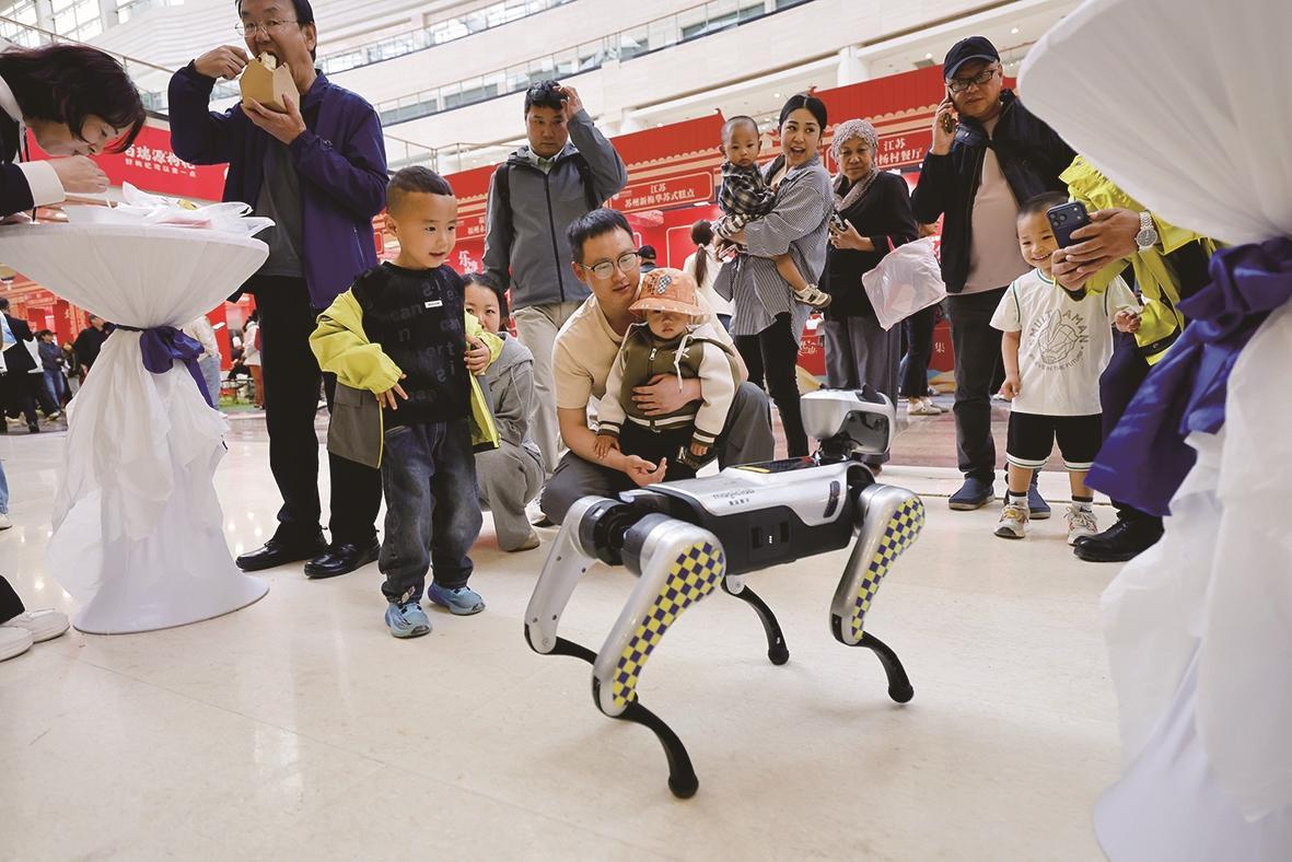 “中华美食荟”活动现场,智能机器狗与市民游客互动趣味十足